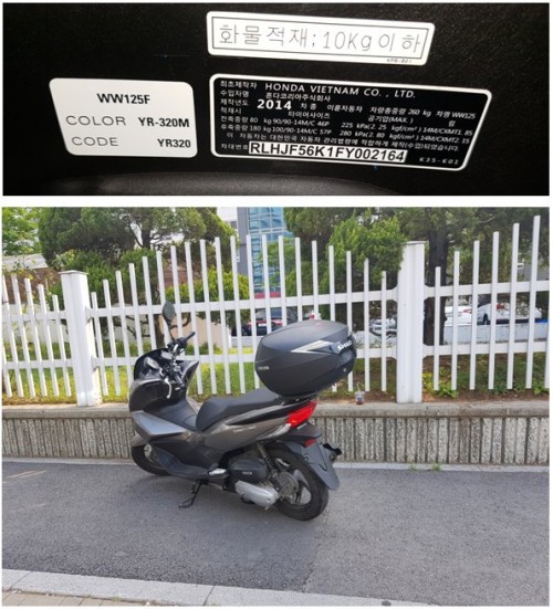 2015년형(2014년식) 혼다 PCX(WW125F) 색상 페인트 판매 가능여부 여쭙니다.
